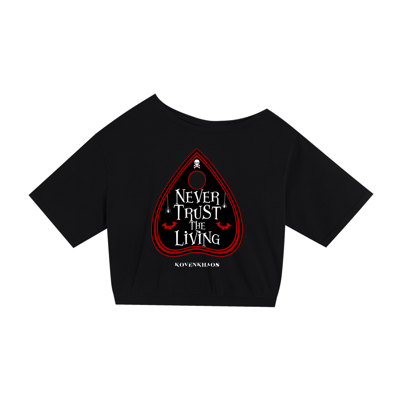 Never Trust (red) Asymmetric Shoulder Oversized Cotton T-Shirt