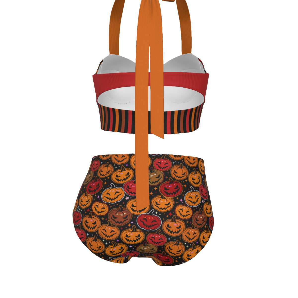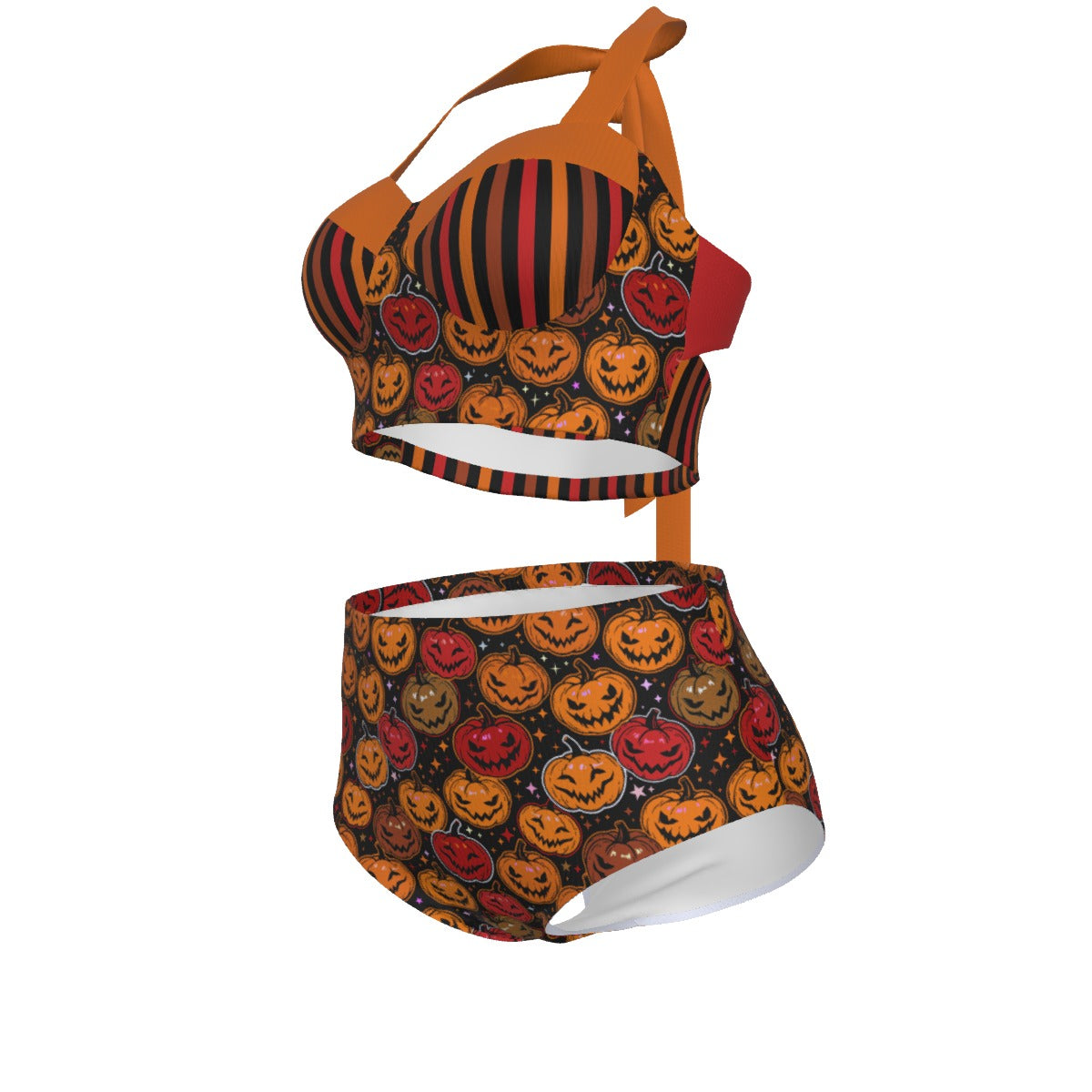 Pimpkin Queen Cross Pinup Vintage Swimsuit Set