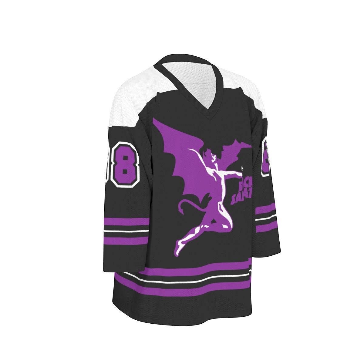 Dark, comfortable, and unapologetically bold. This unisex V-neck hockey jersey features soft fabric and a flattering cut that works for rebels and rink devotees alike. Wear it your way—dressed up or stripped down.
