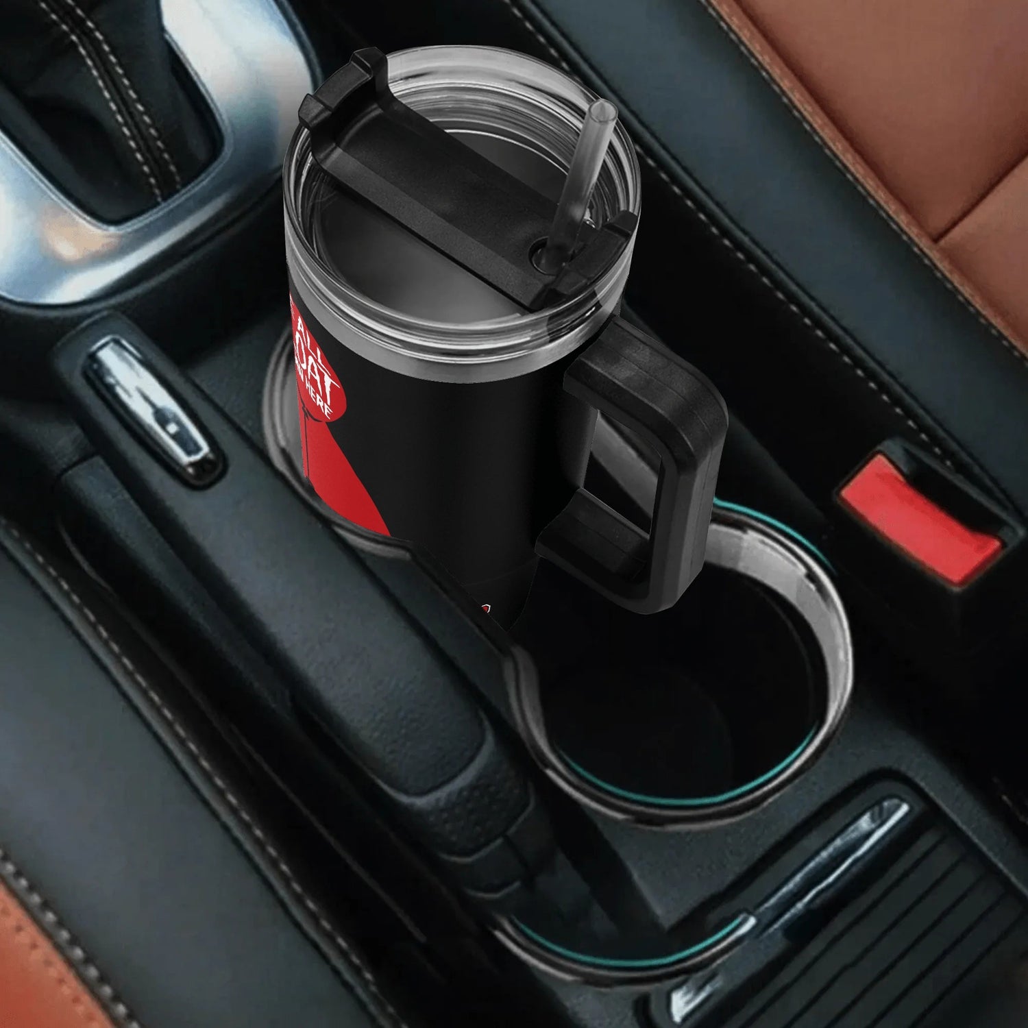- 40oz tumblr with a handle and straw and a tumbler lid .