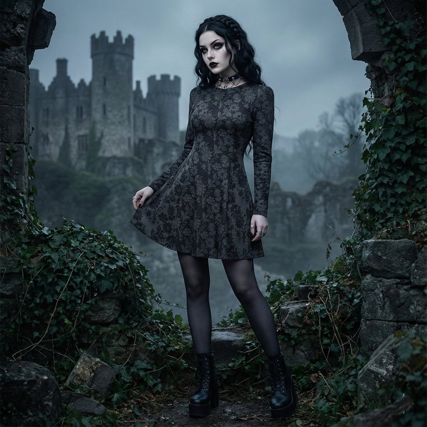 Crafted for those who embrace dark elegance, this pleated dress features a fitted waist that accentuates your silhouette with understated sophistication. The premium fabric delivers both comfort and edge, moving fluidly with your body while maintaining its striking structure. Versatile enough for any season and flattering across all figures, it's the perfect piece for building a moody, rebellious wardrobe that refuses to compromise on style.