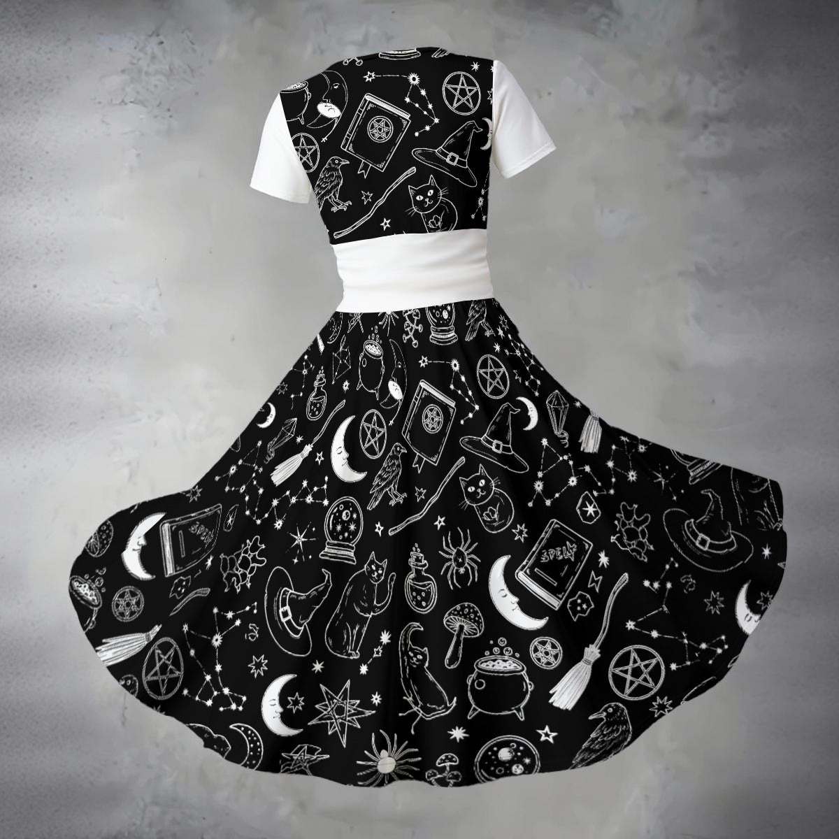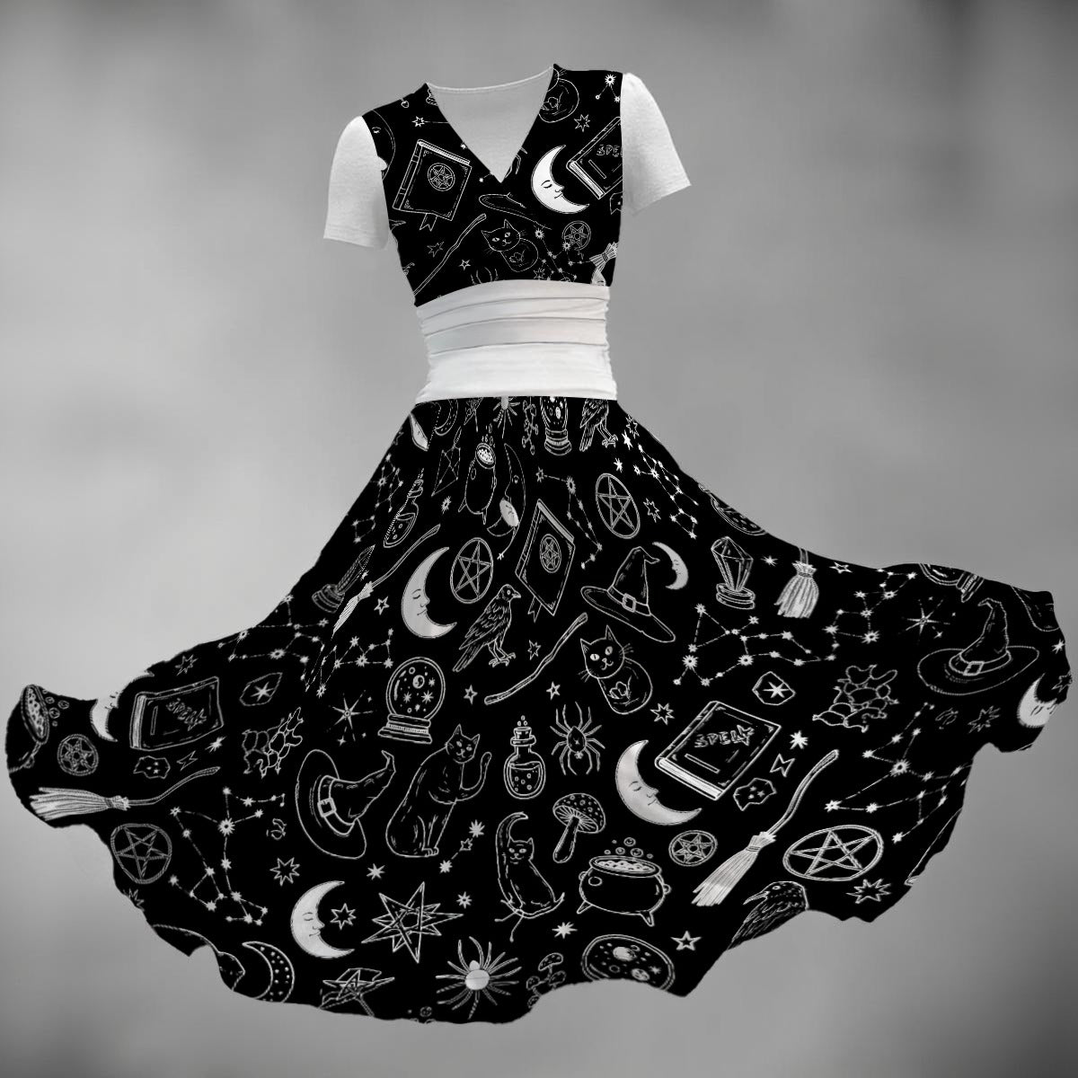 Add a darkly elegant edge to your wardrobe. Crafted from soft cotton polyester, this dress offers both comfort and a hauntingly stylish silhouette. Its fitted, slanted V-neckline and hidden side zipper create a sleek, close fit that’s effortless to wear. Perfect for those who embrace gothic charm with a touch of dark mystery.