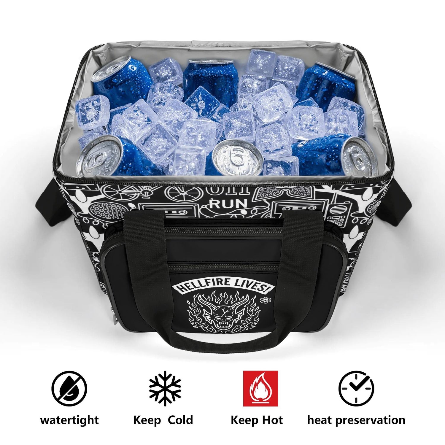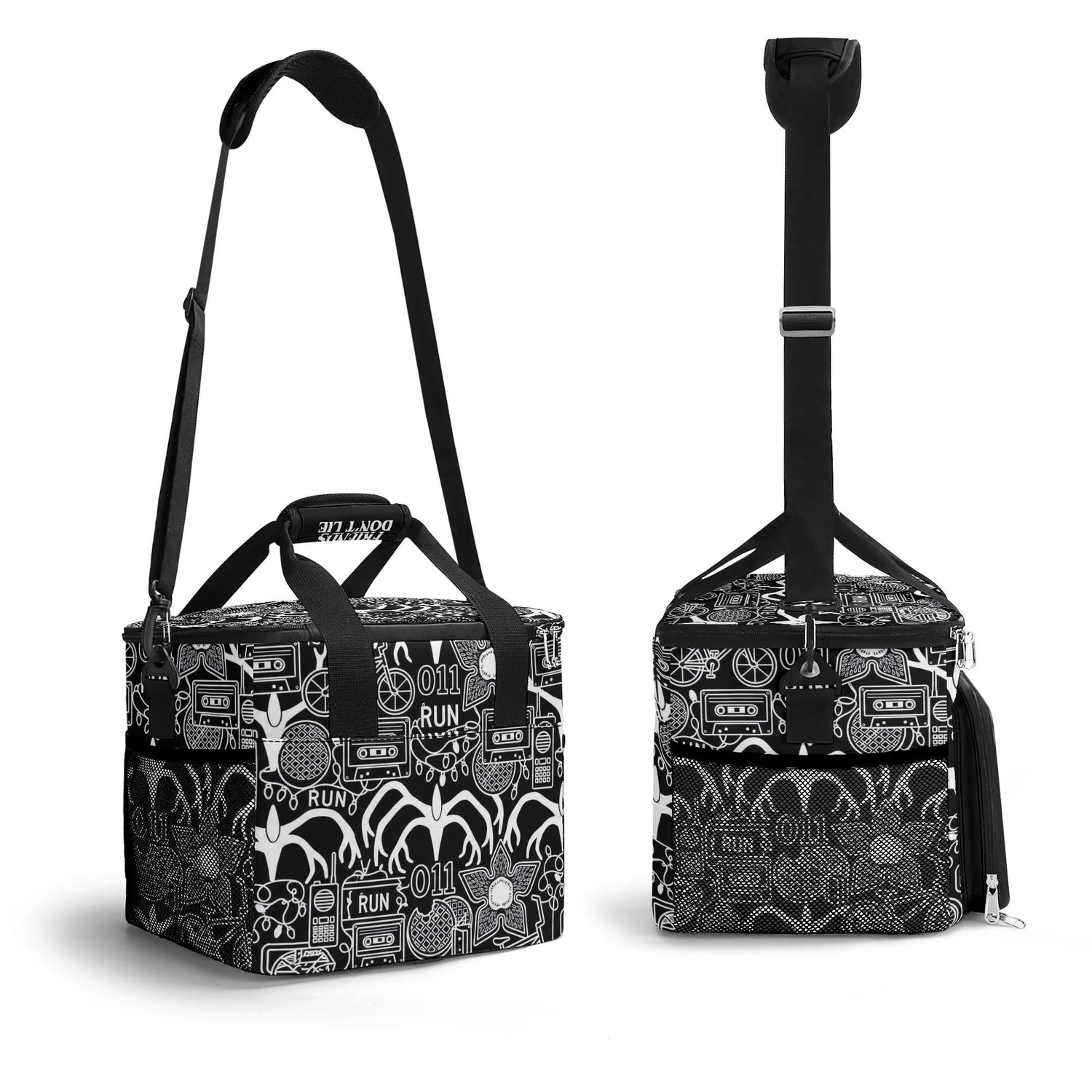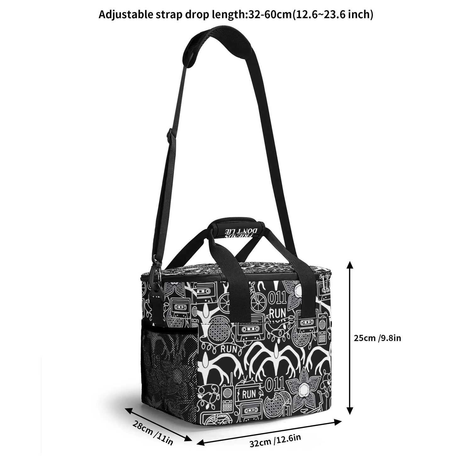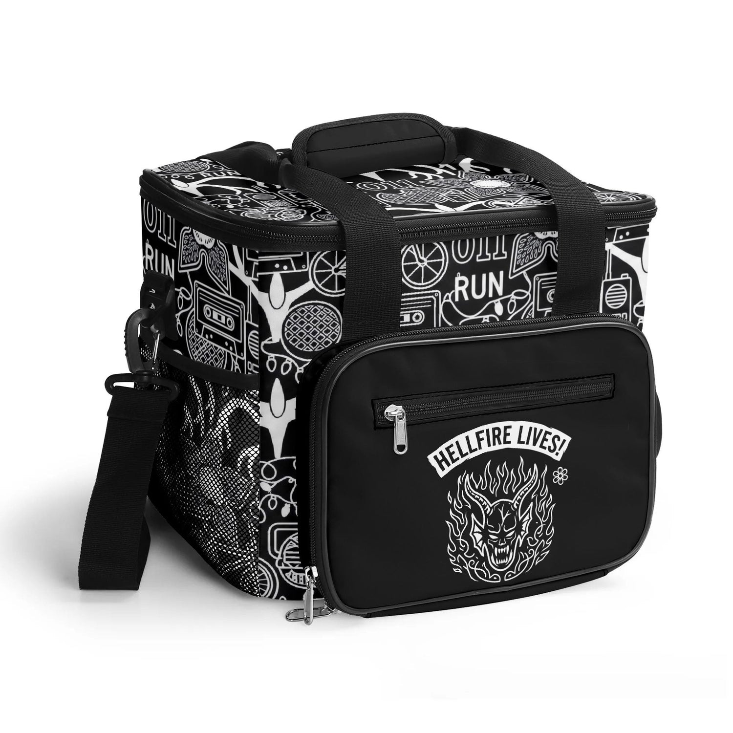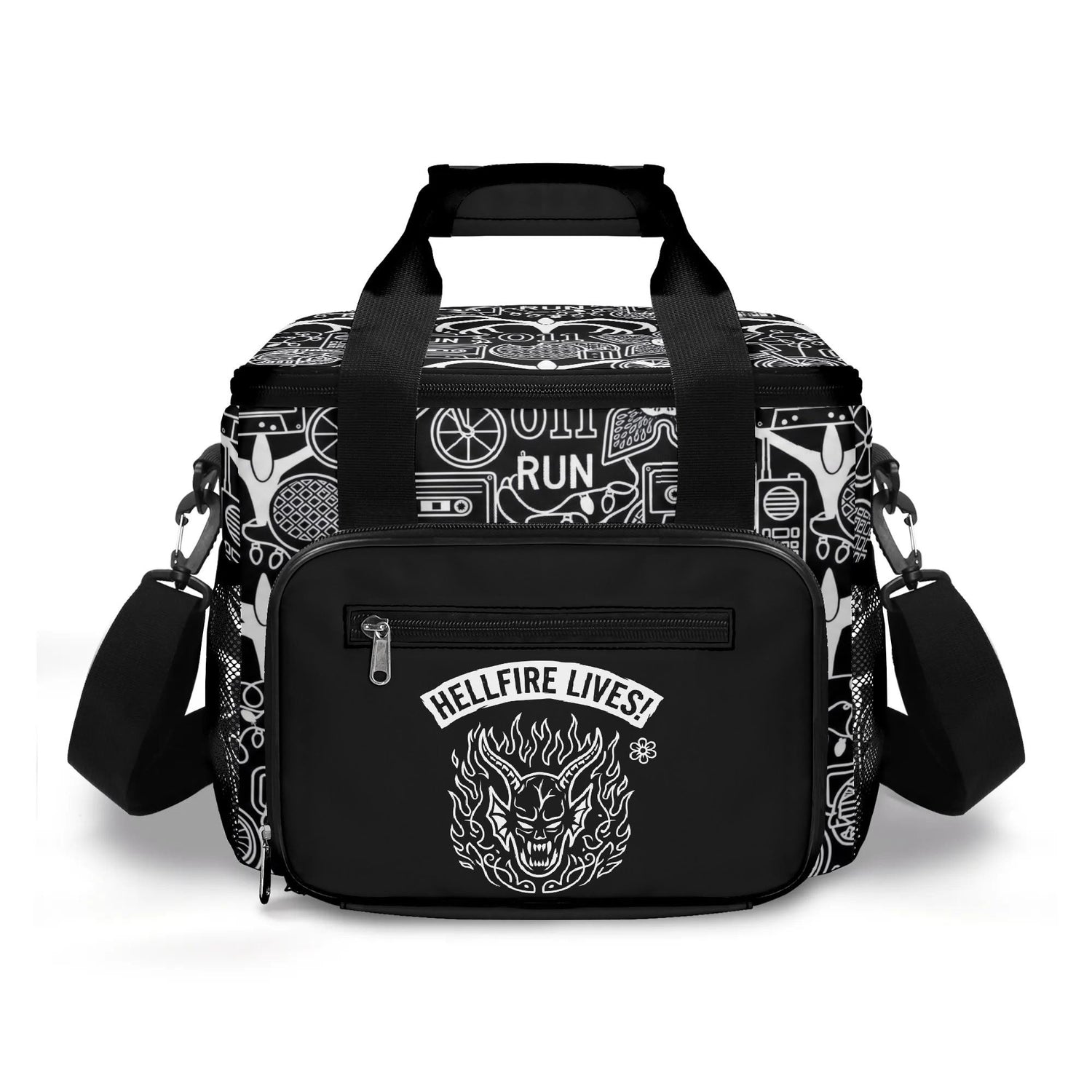 Keep your provisions protected with this rugged insulated carrier, crafted from heavy-duty 300D polyester to withstand the elements. The expansive main compartment maintains optimal temperatures for food and beverages, while strategic storage—including a front zip closure and dual side mesh panels—keeps everything organized. An adjustable, detachable shoulder strap offers hands-free carrying for any dark adventure. Built for those who refuse to compromise on function or edge.