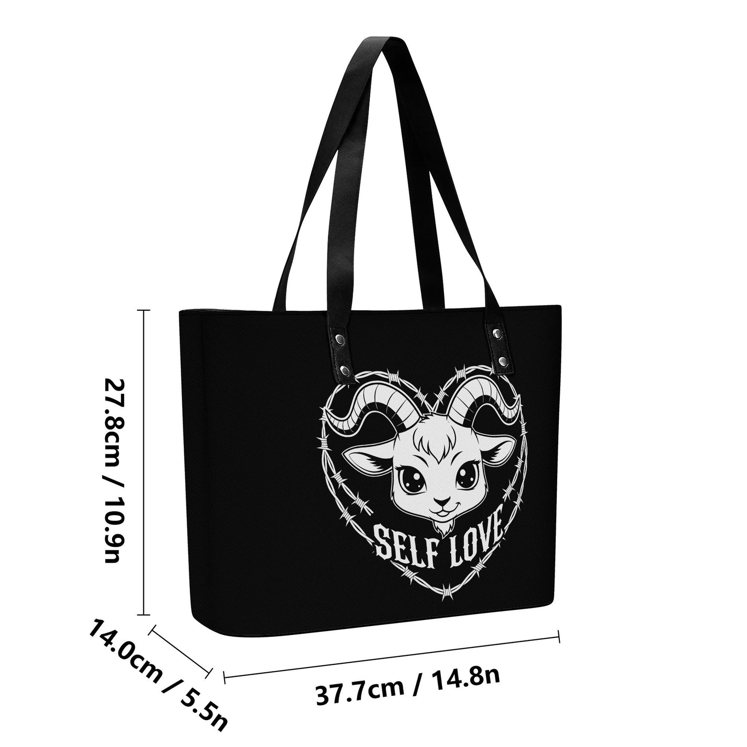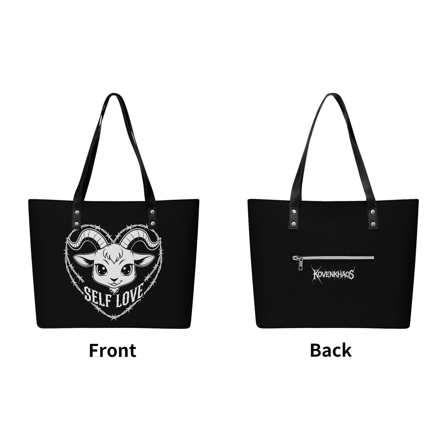Love Thyself Leather Tote Bag with Back Zipper Pocket