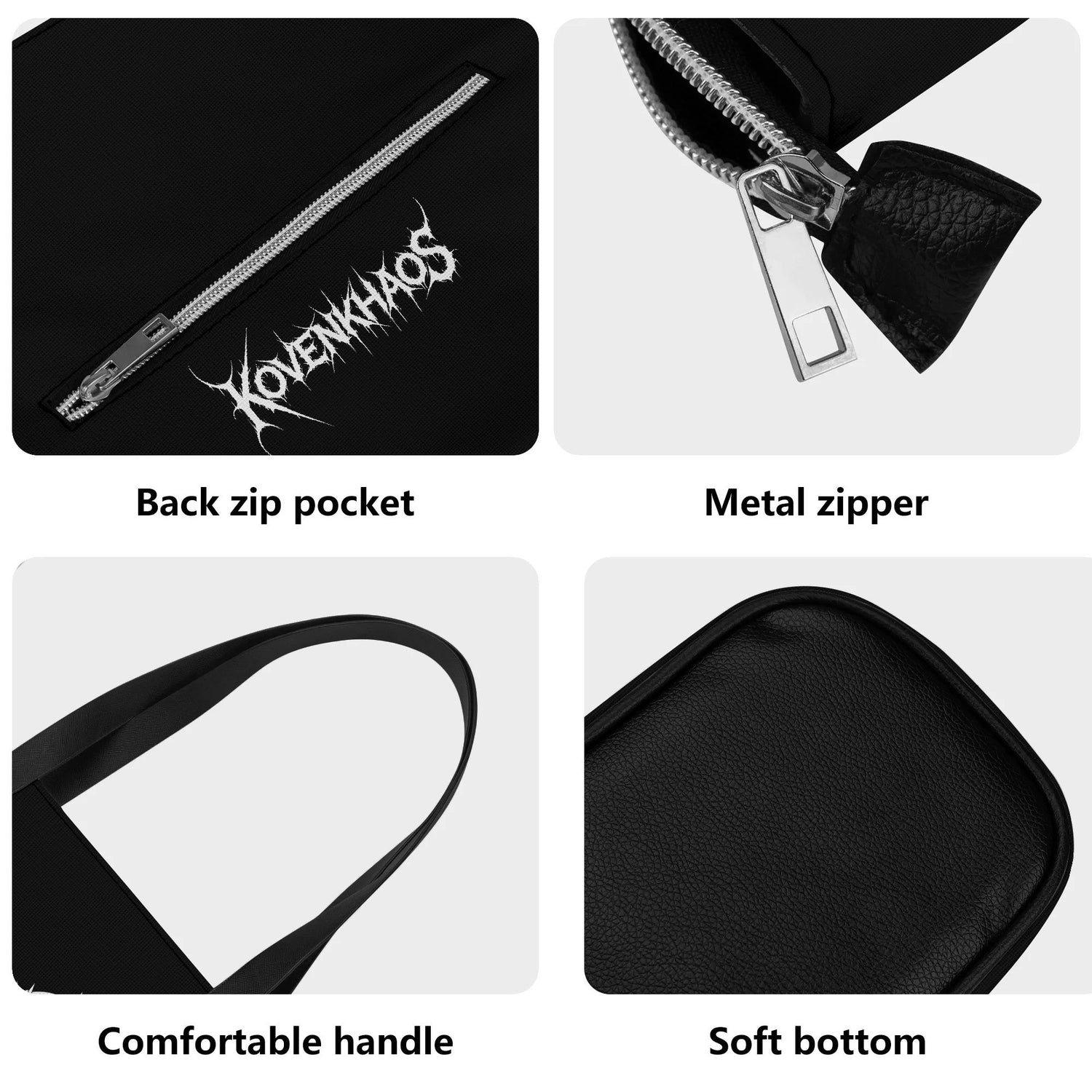 Elevate your dark elegance with this Leather Tote Bag. Crafted from high-quality PU leather, it combines durability with a shadowy charm. Ample space inside, a sturdy handle, and a discreet back zipper pocket make it an essential companion for your daily rituals, whether for work or nocturnal wanderings.