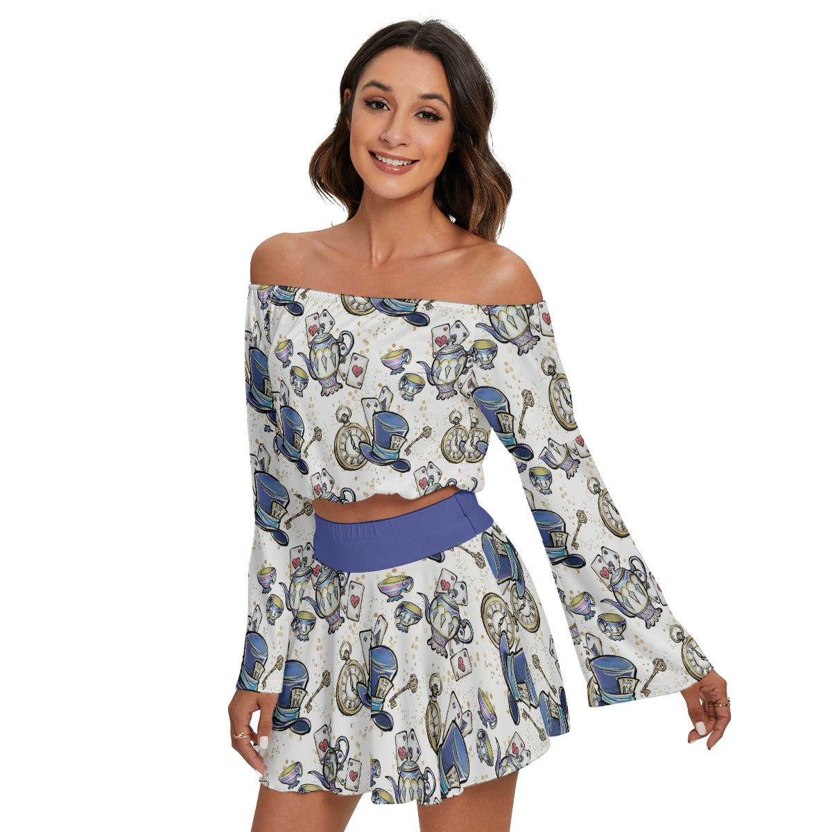 Madd Here Off-shoulder Top And Skirt Set