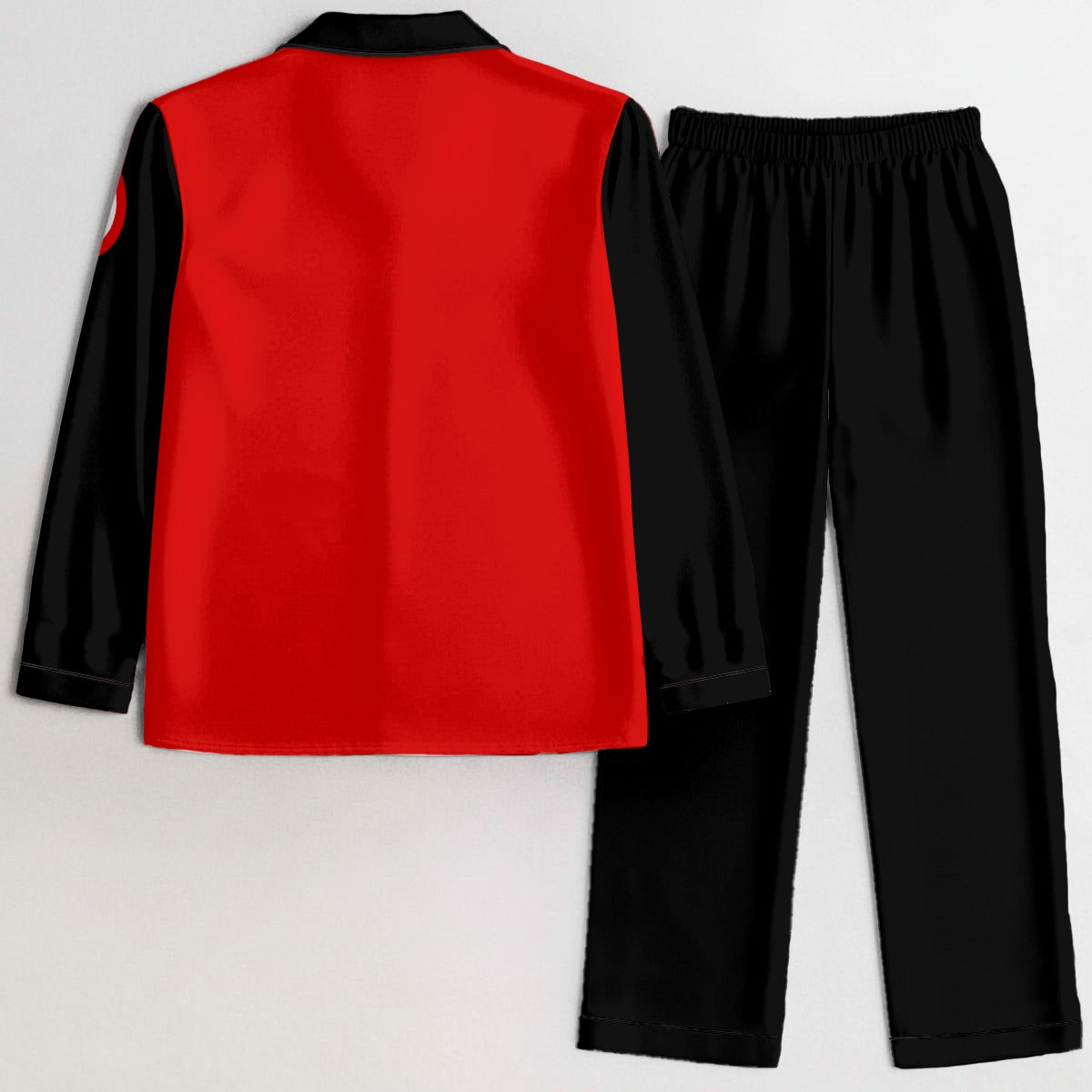Slip into dark elegance with this satin-inspired pajama set that drapes like liquid shadow against your skin. The structured lapel top showcases a chest pocket for an edgy, tailored look, while the straight-cut pants feature dual side pockets for practical edge. Contrast piping traces the seams with moody sophistication, while the non-stretch fabric creates a deliberately relaxed, undone silhouette that channels effortless gothic style.