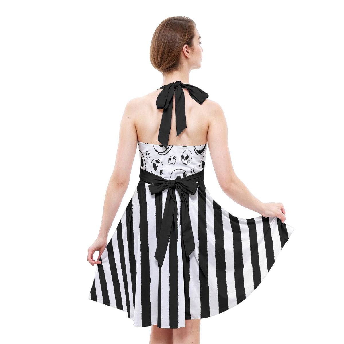 Embrace dark elegance in our Halter Skater Dress. Crafted from sumptuous high-elastic milk silk, this dress drapes with a silky smoothness that moves with you. Its A-line silhouette sculpts a striking figure, while the sleeveless halter and sweetheart neckline reveal a bold, haunting grace. Perfect for weaving mystique into both everyday wear and shadowed celebrations, this dress channels ancient power with modern gothic allure.