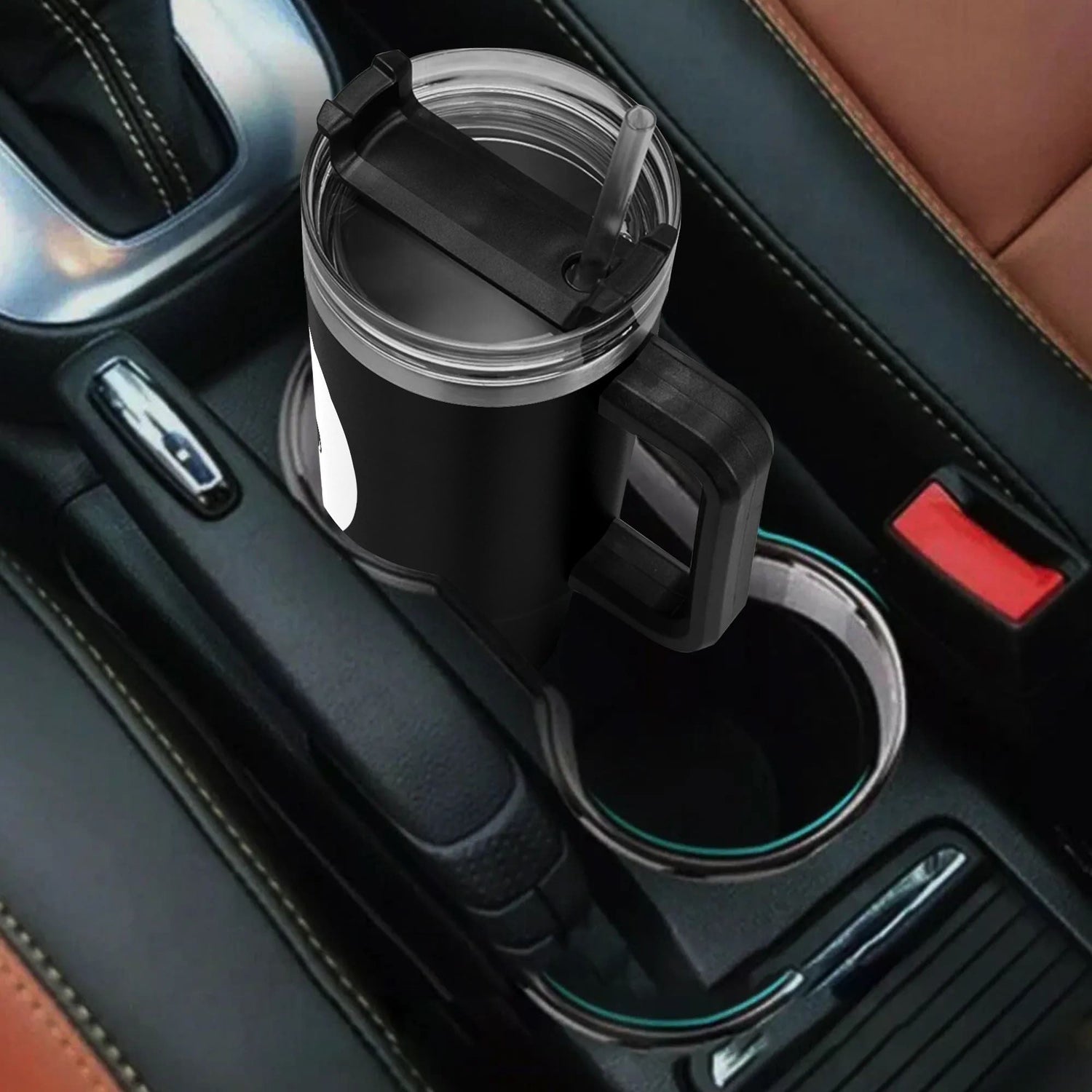 - 40oz tumblr with a handle and straw and a tumbler lid .
