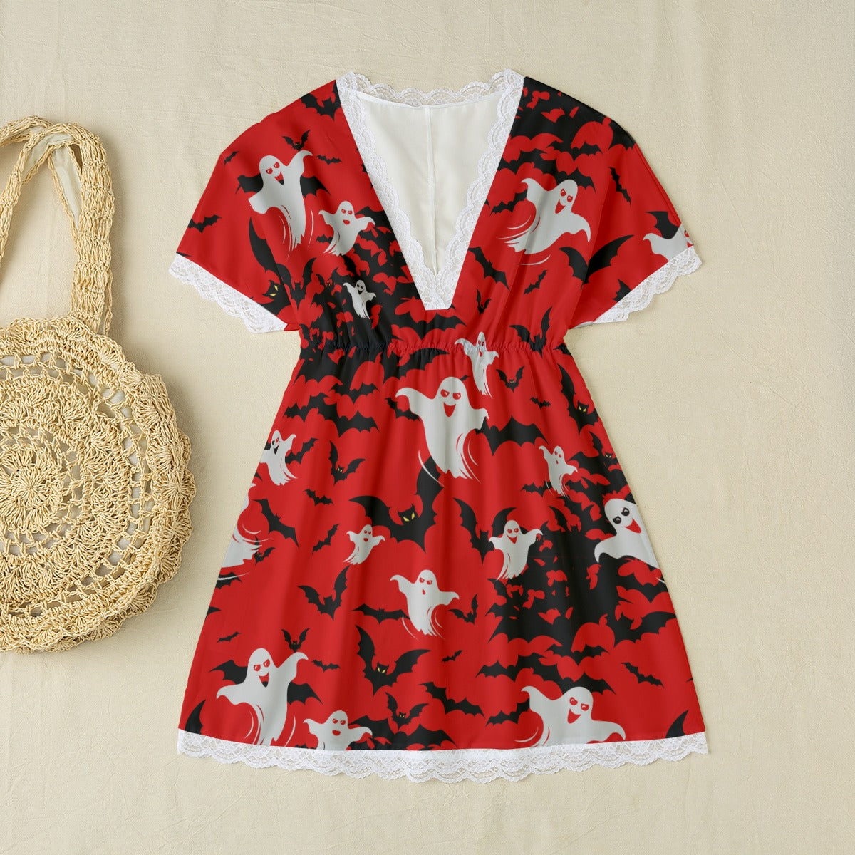 Phantasm Lace Edge Sleepwear With Bat Sleeve