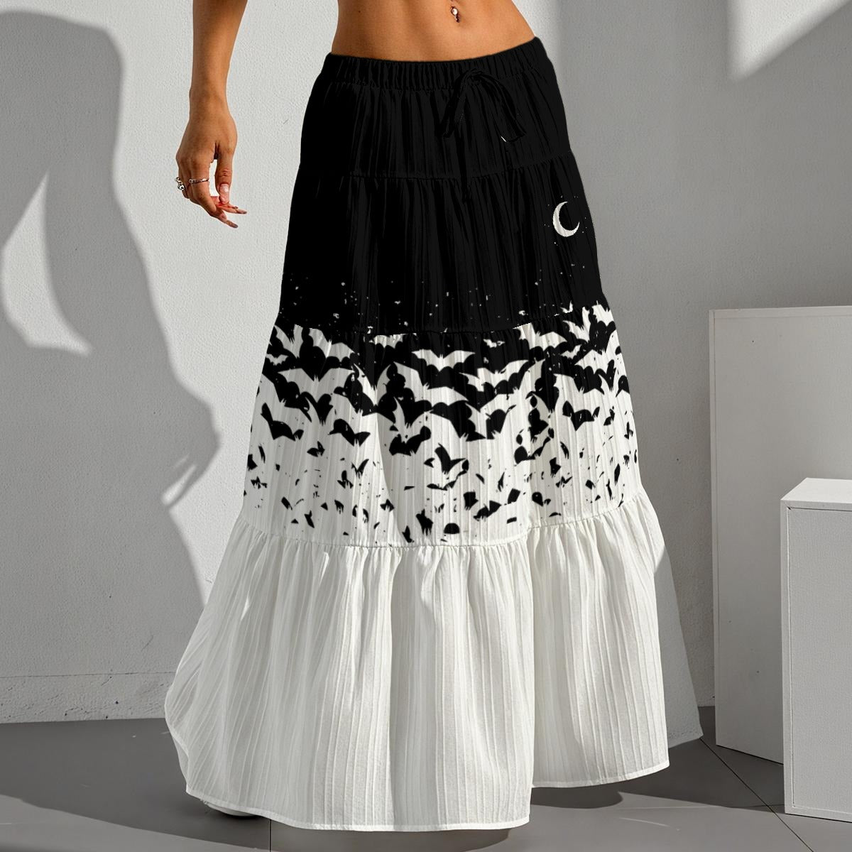 Embrace shadowed elegance of our Pleated Long Skirt. Crafted from high-quality polyester with a distinctive bamboo-inspired texture, this skirt weaves nature’s mystique into your gothic wardrobe. Its flowing, tiered silhouette drapes like midnight mist, while the drawstring elastic waistband offers a tailored, hauntingly comfortable fit. Perfect for moonlit beach walks, twilight gatherings, or any occasion where dark allure reigns, this skirt turns every step into a spellbinding statement.