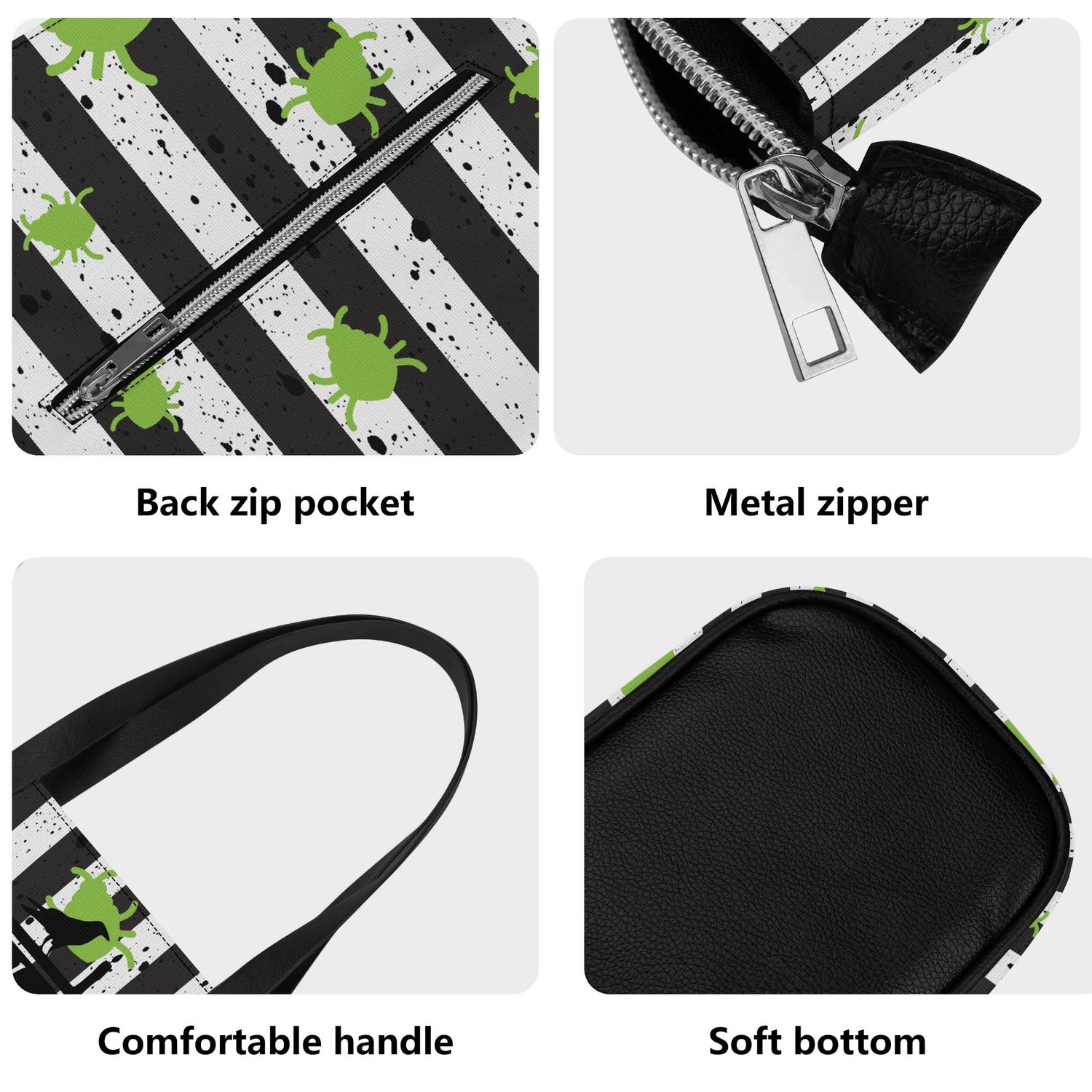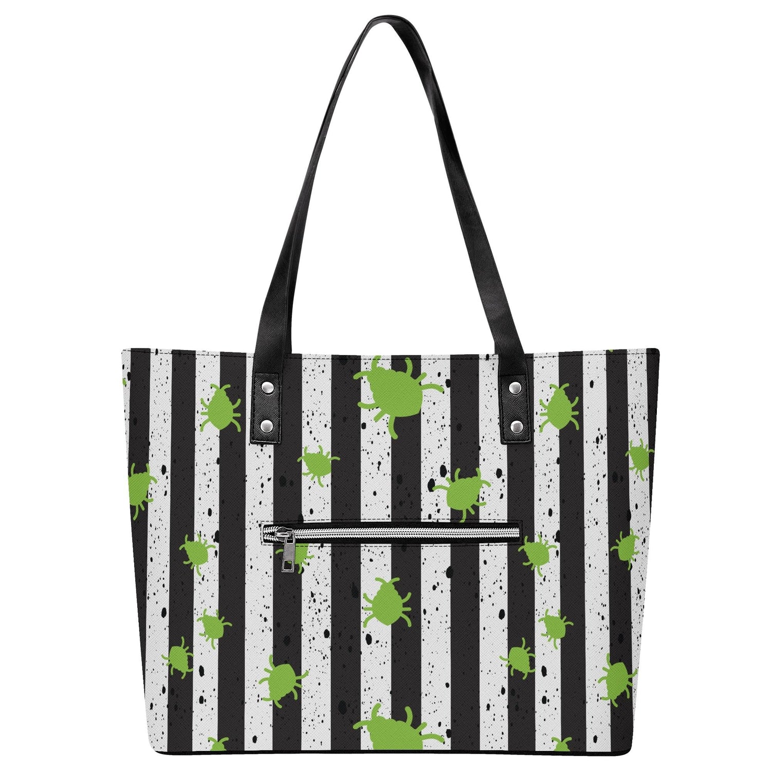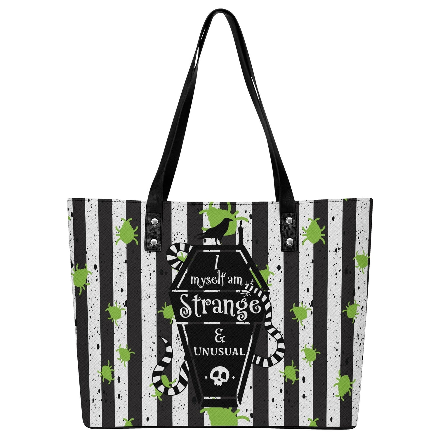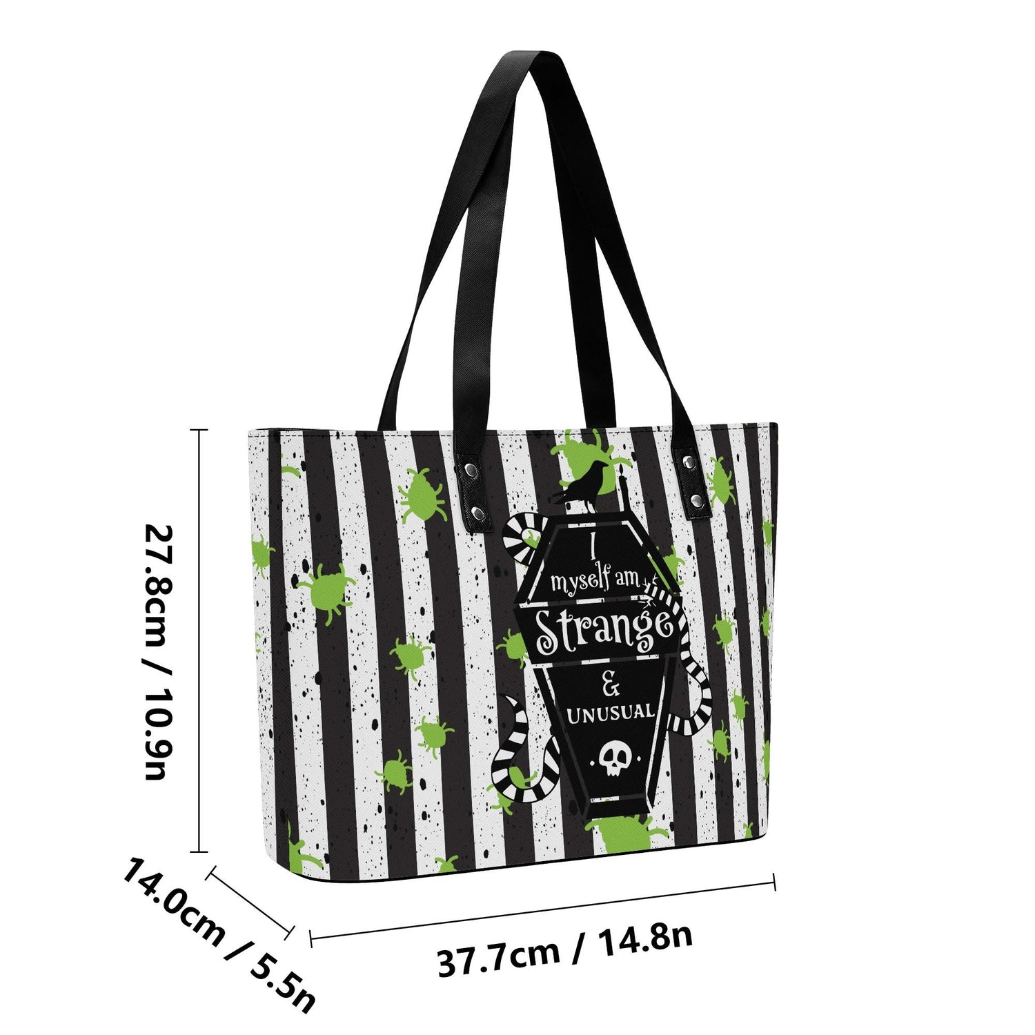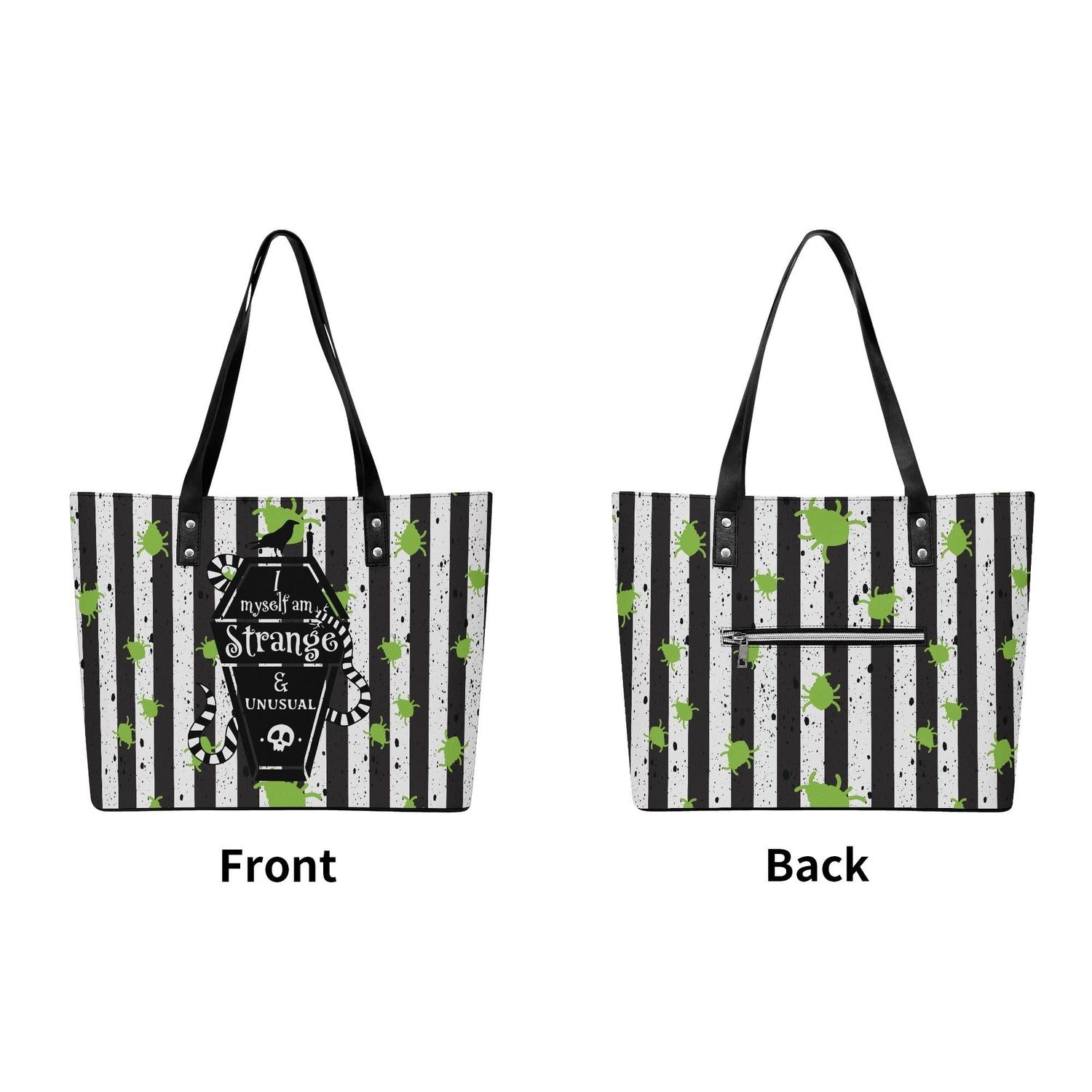 Strange & Unusual Leather Tote Bag with Back Zipper Pocket