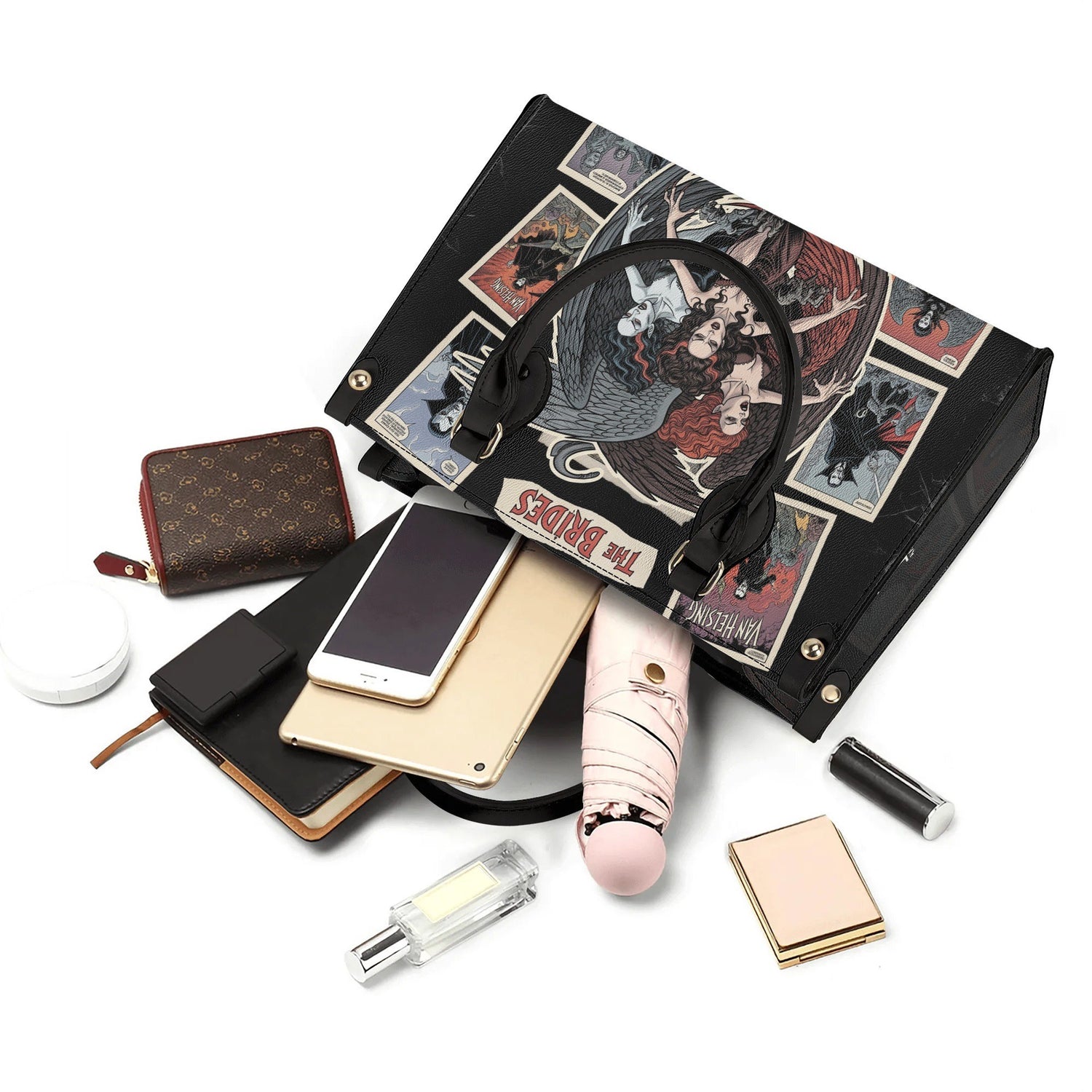 Our handbags exude both toughness and grace. Equipped with a shoulder strap, it delivers effortless carrying for your daily chaos. Inside, a sleek zipper pocket and roomy main compartment keep your secrets safe and your essentials close. Perfect for wandering through urban shadows or haunting everyday haunts, this handbag fuses gothic flair with practical design flawlessly.