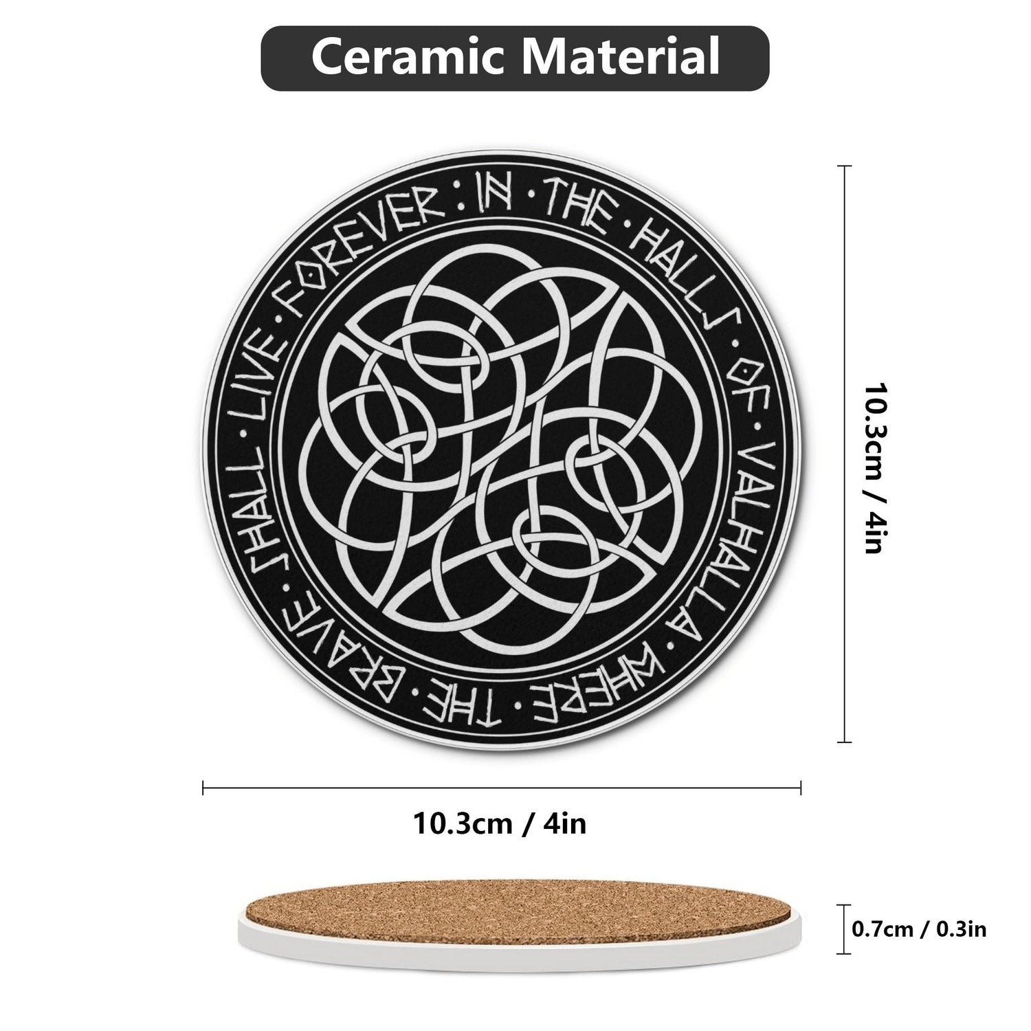 The Valhalla Round Ceramic Coaster is made of environmentally-friendly ceramic material, ensuring safety and eliminating any odors. Its bottom features a sleek wood design, providing stability and preventing damage. Perfect for any occasion, this coaster set of 4 makes for an ideal Christmas or housewarming gift for friends, family, and coworkers. Its versatile size is suitable for water glasses, coffee mugs, and even small plates.